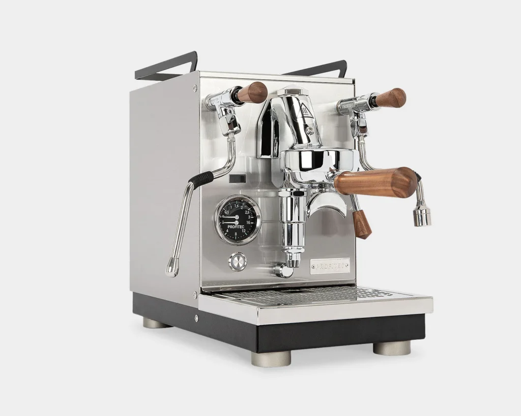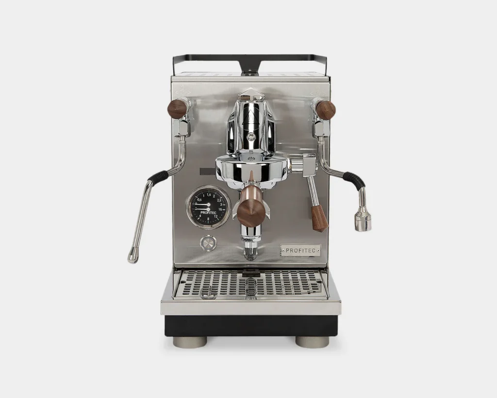 Die Profitec JUMP ist eine kompakte Zweikreiser-Espressomaschine mit exklusivem Design, ideal für Home-Baristi, die Wert auf Individualität und Funktionalität legen. Dank des praktischen Multifunktionsschalters an der Unterseite können drei voreingestellte Kesseltemperaturen gewählt sowie Preinfusion und ECO-Modus aktiviert oder deaktiviert werden. Das dezente OLED-Display informiert über die gewählten Einstellungen, zeigt die Dauer der Espressoextraktion (Shot Counter) an und warnt bei leerem Wassertank.