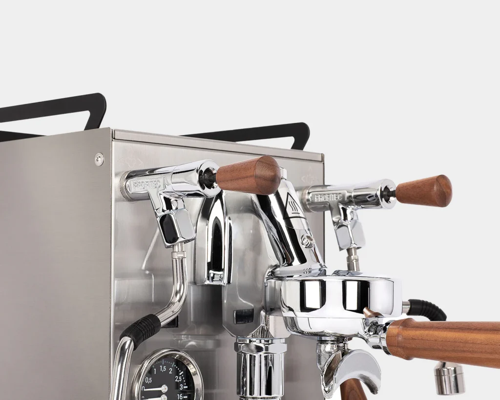 Multifunktionsschalter: Drei Temperaturen wählbar (120 °C, 124 °C, 128 °C), Preinfusion und ECO-Modus ein-/ausschaltbar